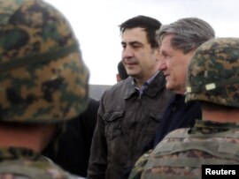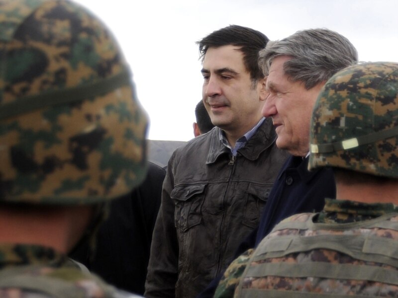 U.S. Special Envoy to Afghanistan and Pakistan Richard Holbrooke with Georgia's President Saakashvili at Krtsanisi National Military Training Center